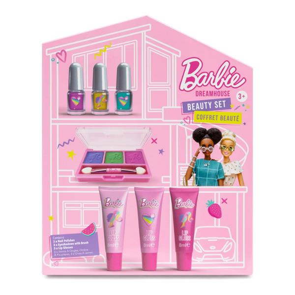 Barbie Dreamhouse Beauty Set is the officially licensed dream make-up set designed specifically for Barbie fans. This stunning beauty set makes a perfect gift for aspiring young makeup artists and Barbie enthusiasts alike!