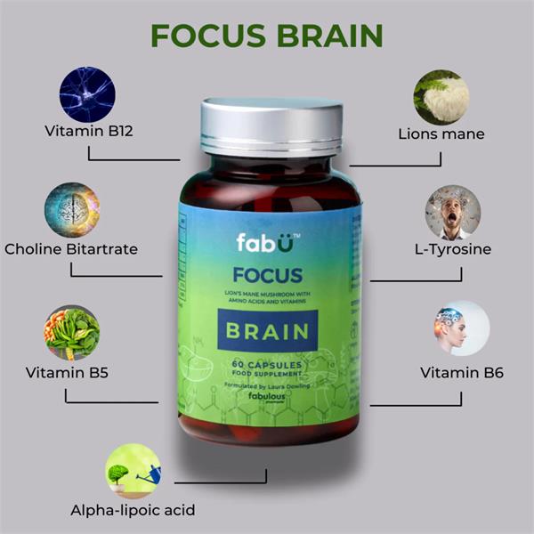Discover the power of fabÜ Focus Brain, a specially formulated dietary supplement designed to enhance mental performance and psychological function. Each bottle contains 60 easy-to-swallow capsules, meticulously crafted to help reduce tiredness and fatigue.