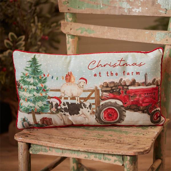 Langs Christmas at the Farm Cushion with tractor and animal stack. Size 45x25 cm.