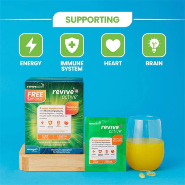 Revive Active Tropical Flavour 30 Pack + 15 Day Omega Trial Free